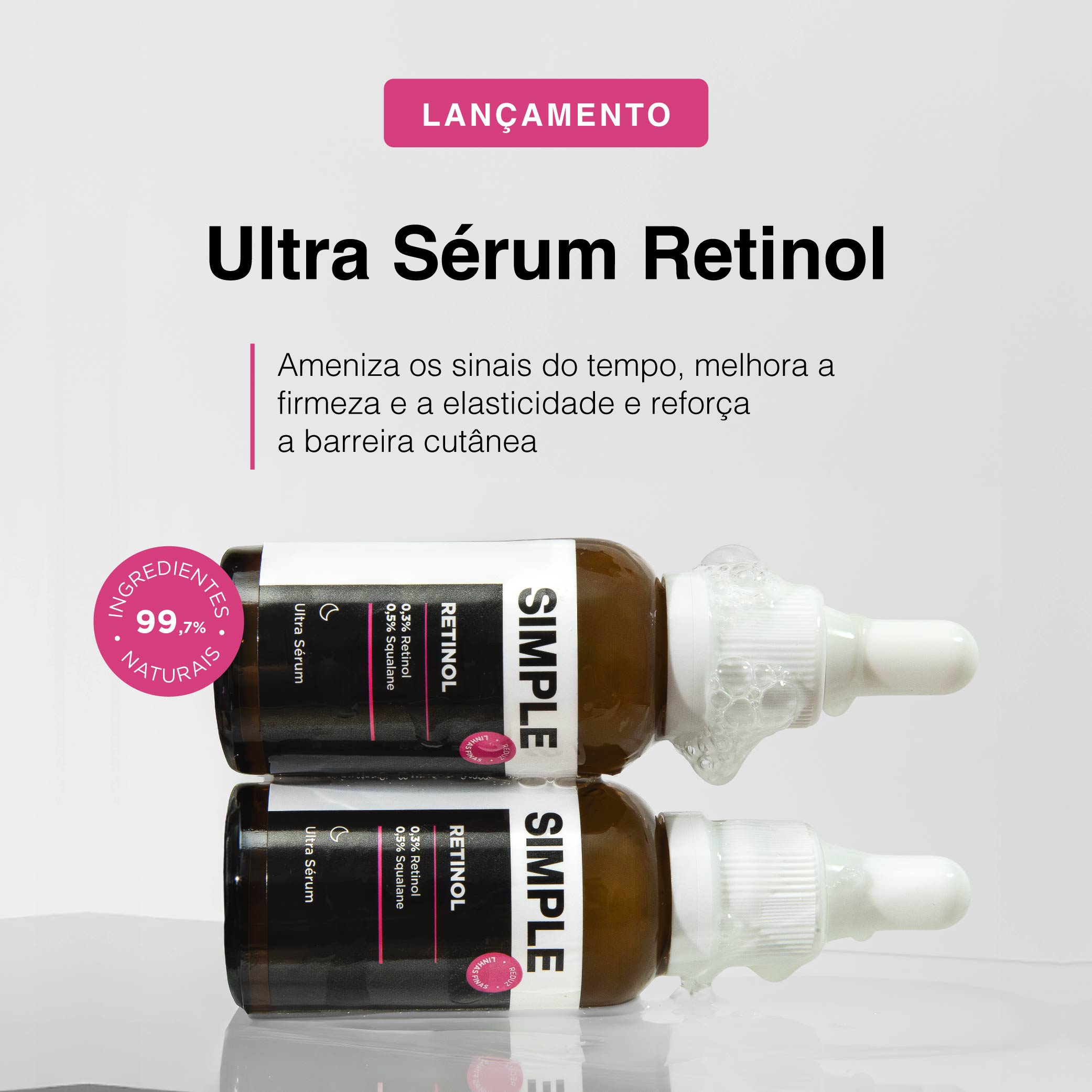 Redução dos sinais do tempo, mais firmeza e textura uniforme com retinol na medida certa para a rotina noturna.