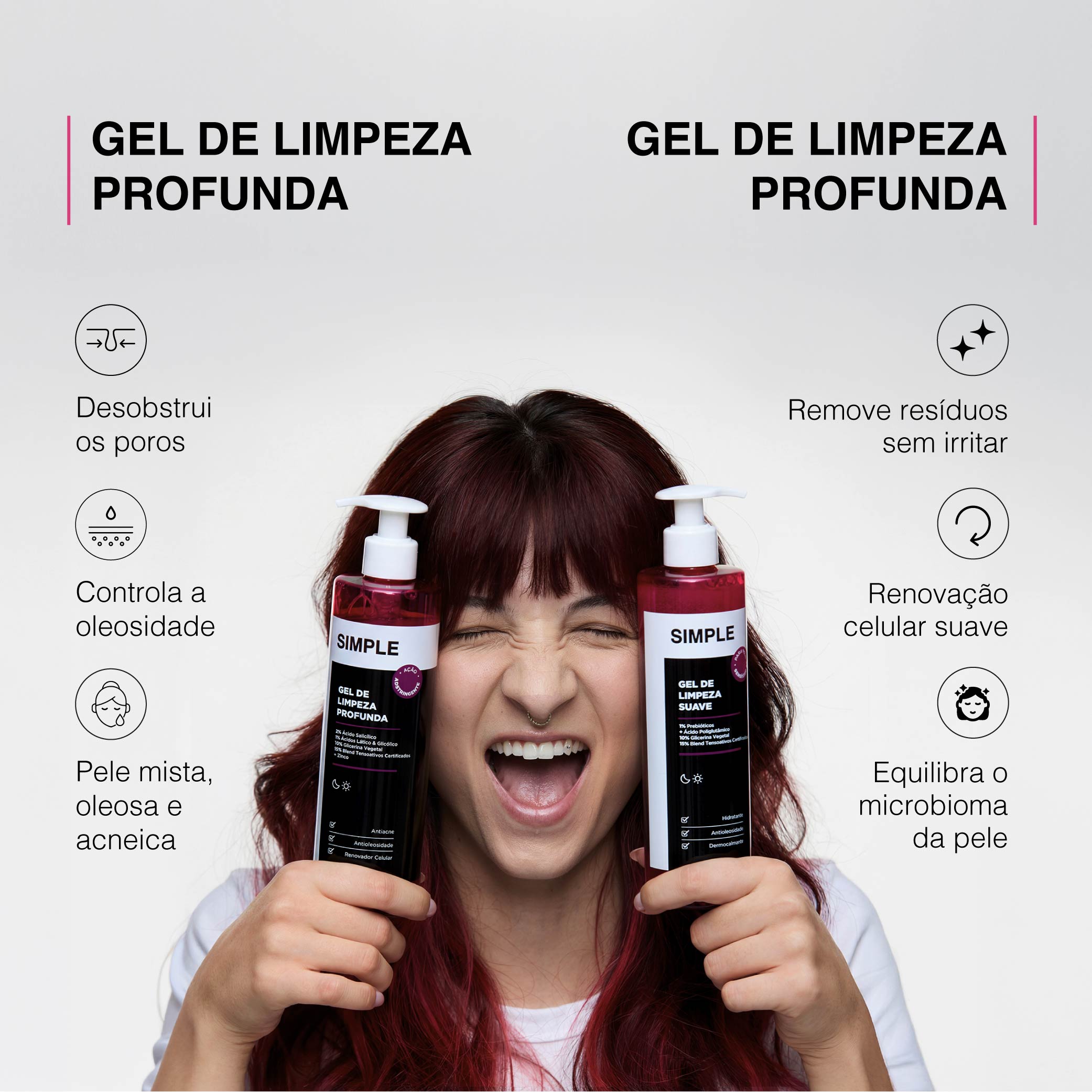 Controle do brilho e sensação de pele limpa por mais tempo, sem ressecar.